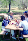 Color Photos of the parks 72nd anniversary celebrations- cake cutting, barbecue, speakers. Superintendent Harold Grafe serving cake. ; ZION Museum and Archives Image 800_21_01022 ; ZION 15933