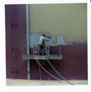 Man repainting the exterior of the million gallon water tank at Birch Creek. ; ZION Museum and Archives Image 005.08.01-10of18 ; ZION 15933