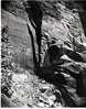 BW photo of a rock slide along the Narrows Trail. ; ZION Museum and Archives Image 107_06_09008 ; ZION 15933