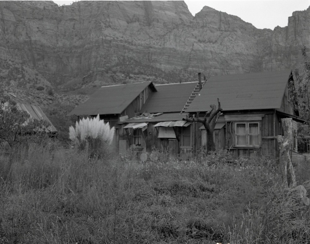 Samuel Heber and Mildred C. Crawford property, east of Virgin River, south of park boundary with house. ; ZION Museum and Archives Image 103_01_038 ; ZION 8229