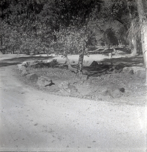 Vegetation in center of roundabout along the scenic canyon drive near the Grotto. ; ZION Museum and Archives Image 002.03.06-2of13 ; ZION 15933