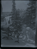 Nitrate negative of large snow covered trees from below the rim with hoodoos in background in BRCA. ; BRCA Museum and Archives Image BRCA8875_001_468 ; BRCA 8875