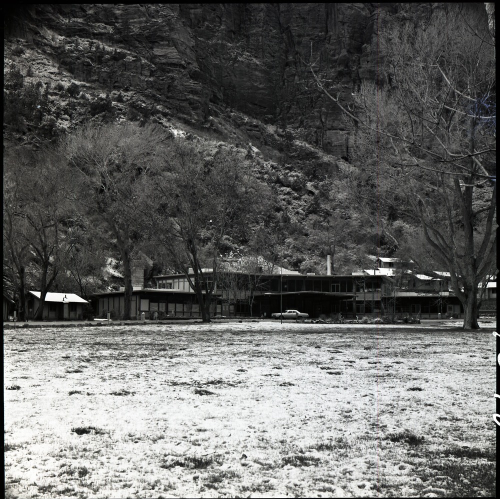 Main building at Zion Lodge for 1975 Environmental Impact Statement (EIS). ; ZION Museum and Archives Image 004_08_060 ; ZION 15933