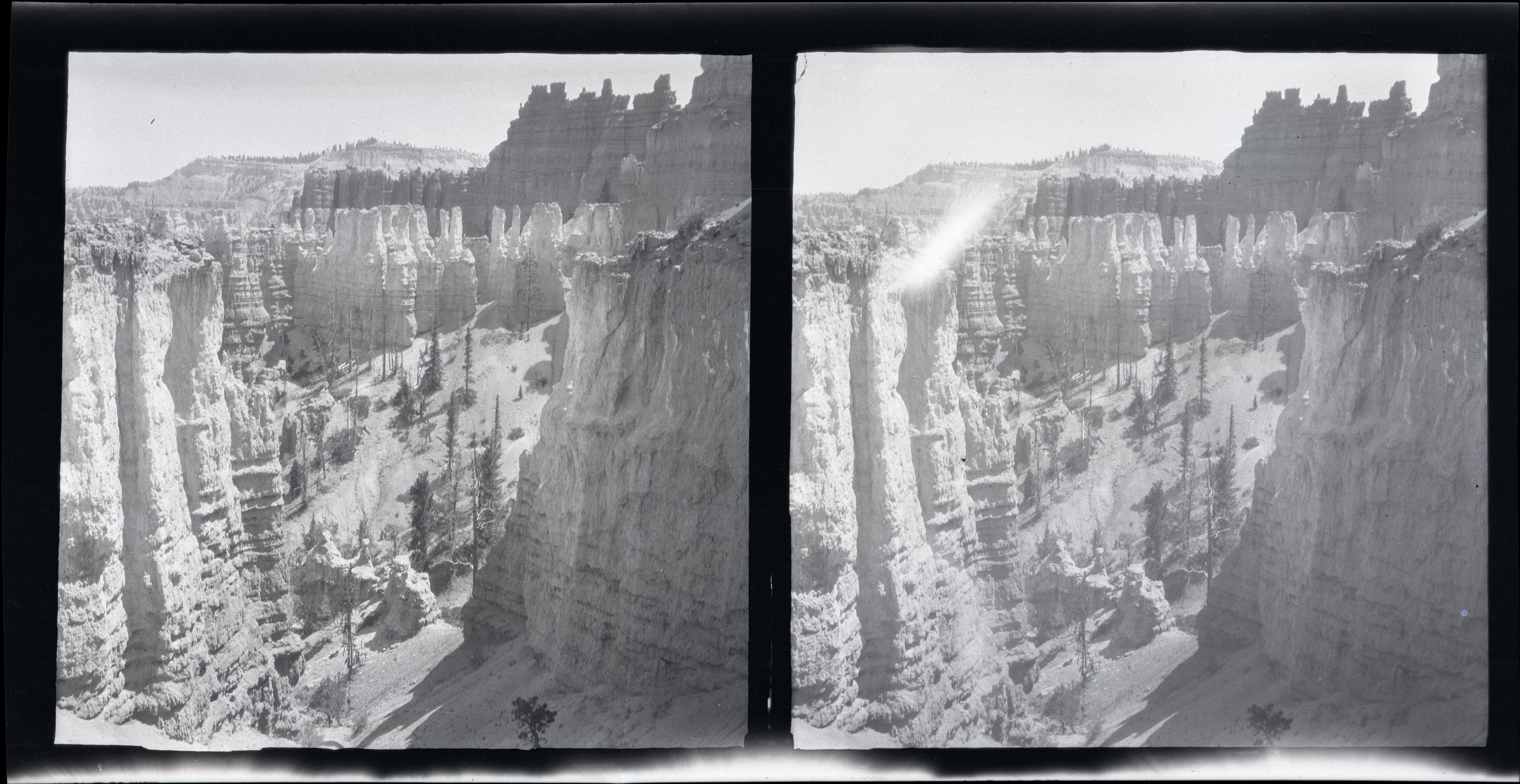 Stereoscopic negative of hoodoos from the rim in BRCA. ; BRCA Museum and Archives Image BRCA8875_002_007 ; BRCA 8875