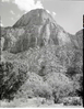 Proposed site for new Mission 66 Visitor Center and Museum, view northeast. From right to left: East Temple, Mount Spry, Twin Brothers, and Mountain of the Sun. ; ZION Museum and Archives Image 004_01005 ; ZION 7747