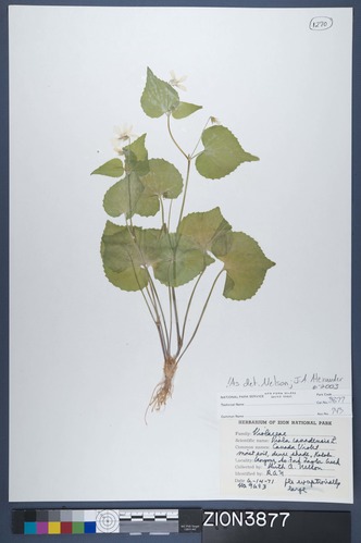 Viola canadensis, Canada violet. Collected by Ruth A. Nelson, 06-14-1971. Catalogued by Margaret Malm, 1988.