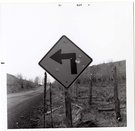 Left Turn Ahead' sign in Kolob Canyon. ; ZION Museum and Archives Image 007.01.01-71of73 ; ZION 15933