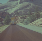 Chipsealing construction vehicles working on roads in the East side of the park. ; ZION Museum and Archives Image 002.12.04-26of38 ; ZION 15933