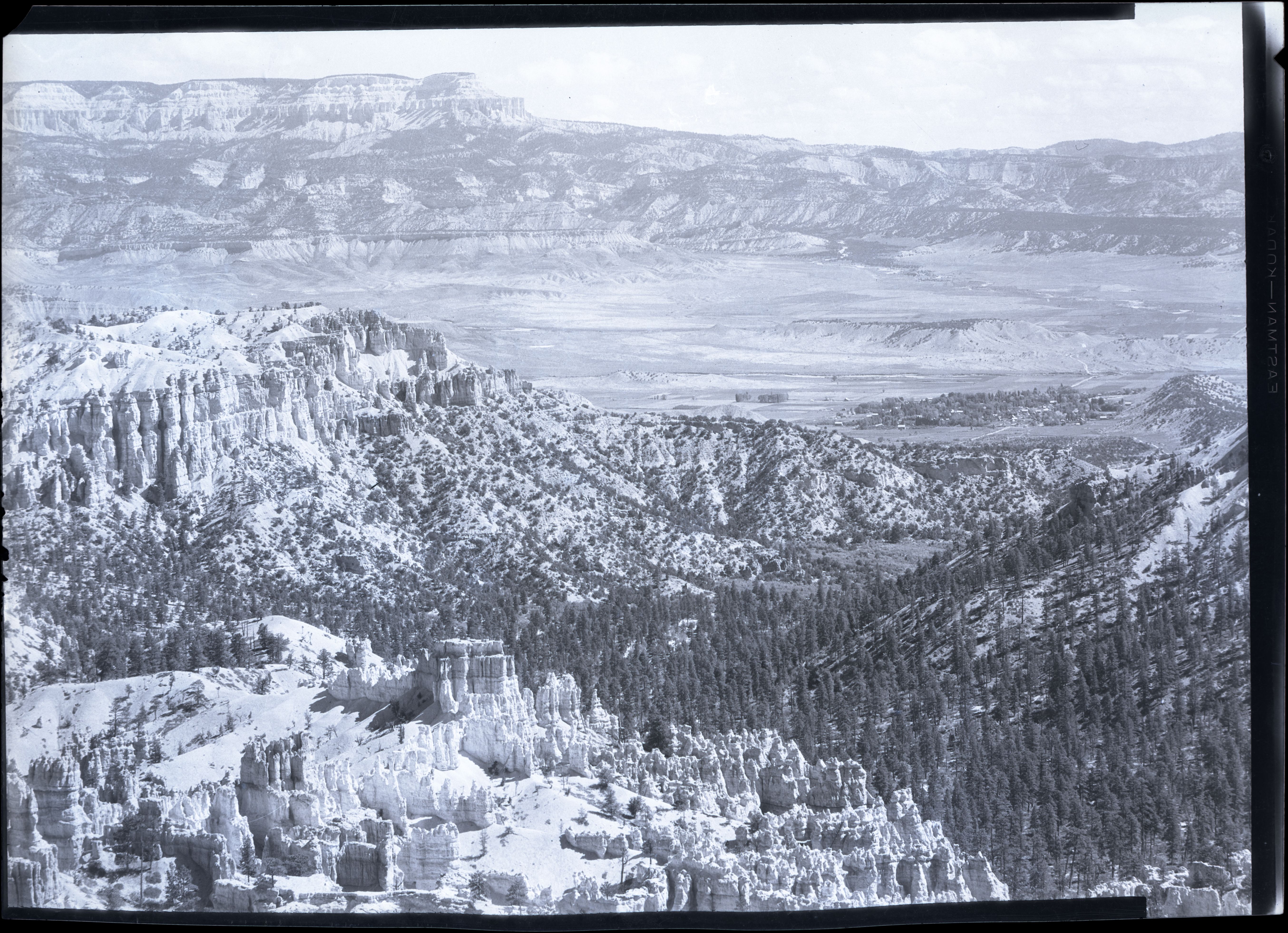 Nitrate negative of hoodoos and forested areas from the rim in BRCA. ; BRCA Museum and Archives Image BRCA8875_001_217 ; BRCA 8875