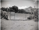 BW photo of the 1937 grazing study - 4x5. Fence line across canyon in Hop Valley. ; ZION Museum and Archives Image 105_07_02009 ; ZION 15933