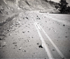 BW photos of rock slides in Kolob Canyons - 110mm. Rock slide over roadway. ; ZION Museum and Archives Image 107_06_21025 ; ZION 15933