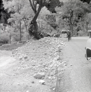 Side of the road with large rocks during construction along the scenic canyon drive near the Grotto. ; ZION Museum and Archives Image 002.03.05-29of37 ; ZION 15933