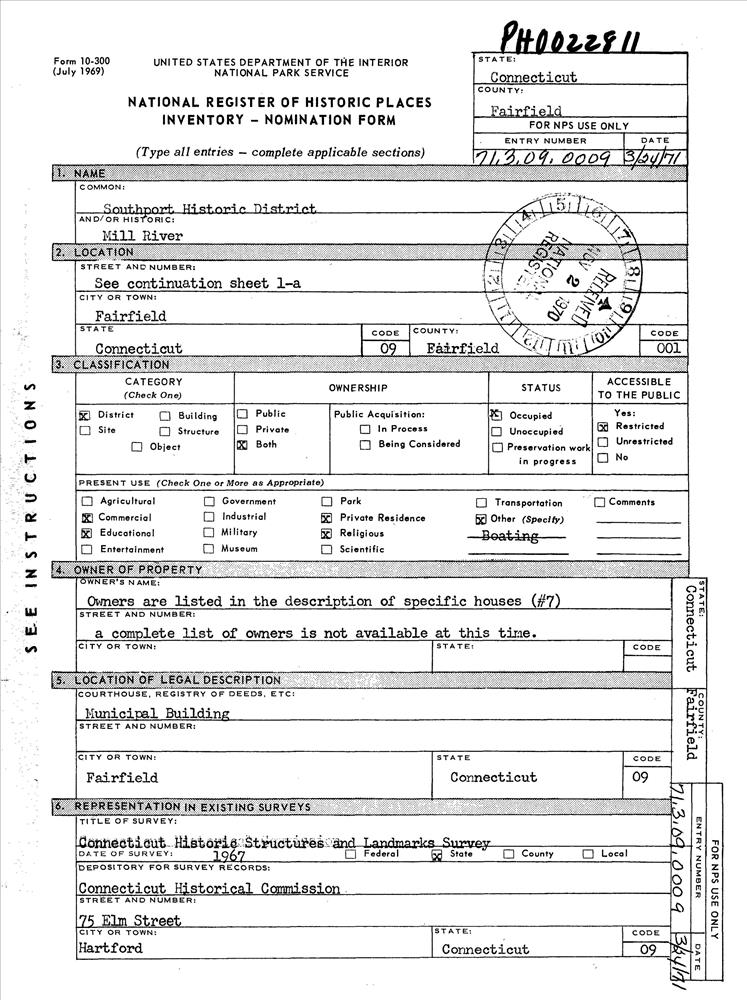 Fairfield ; Roughly bounded by Southport Harbor, RR, Old South Rd. and Rose Hill Rd.